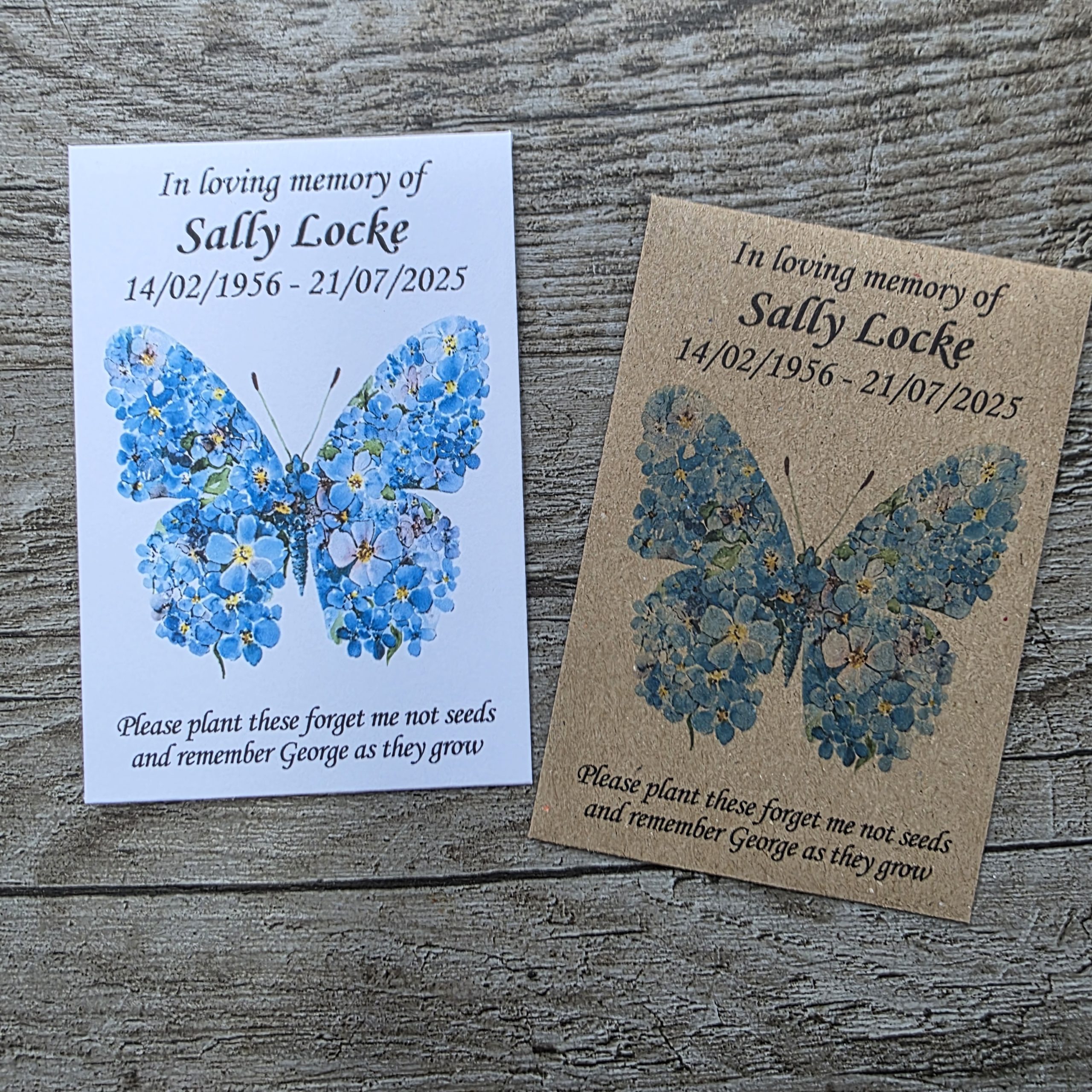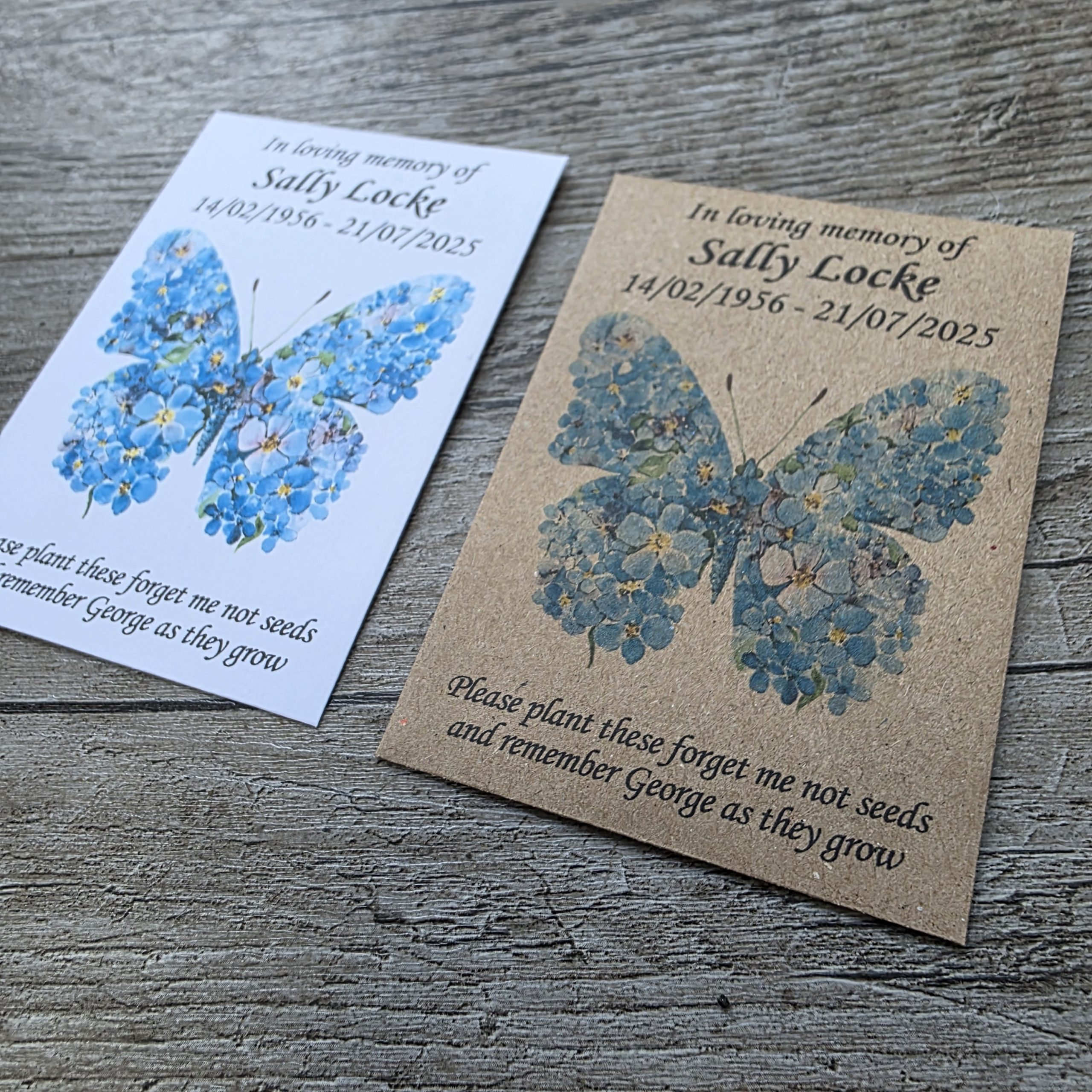 Forget Me Not Funeral Seed Packet – Butterfly Design