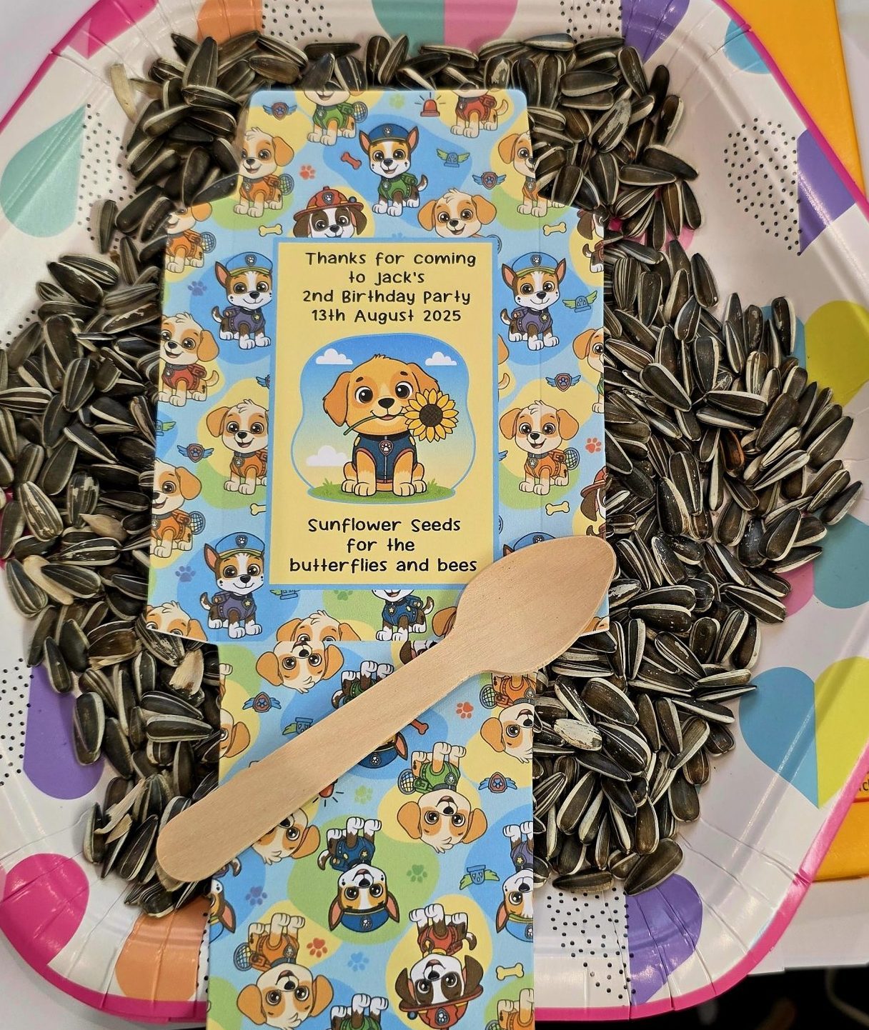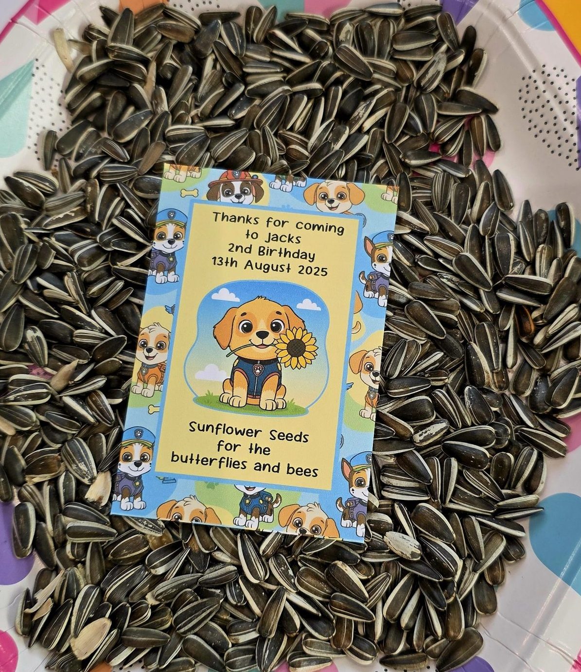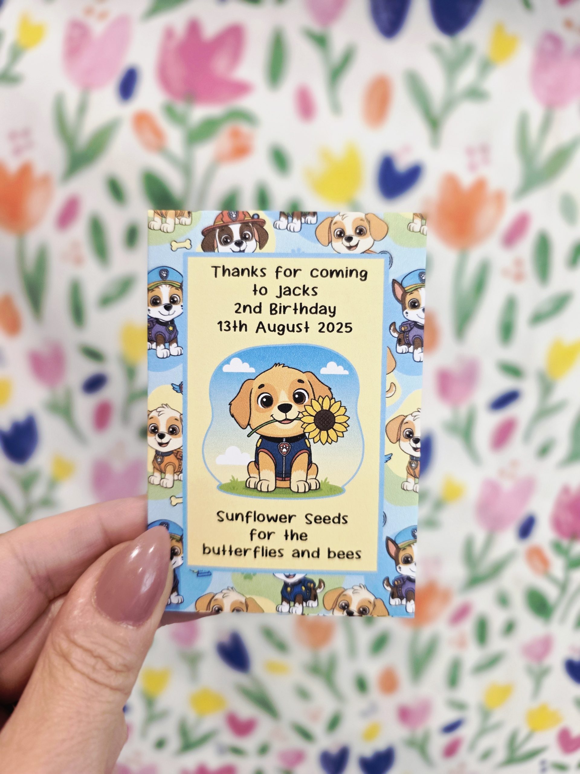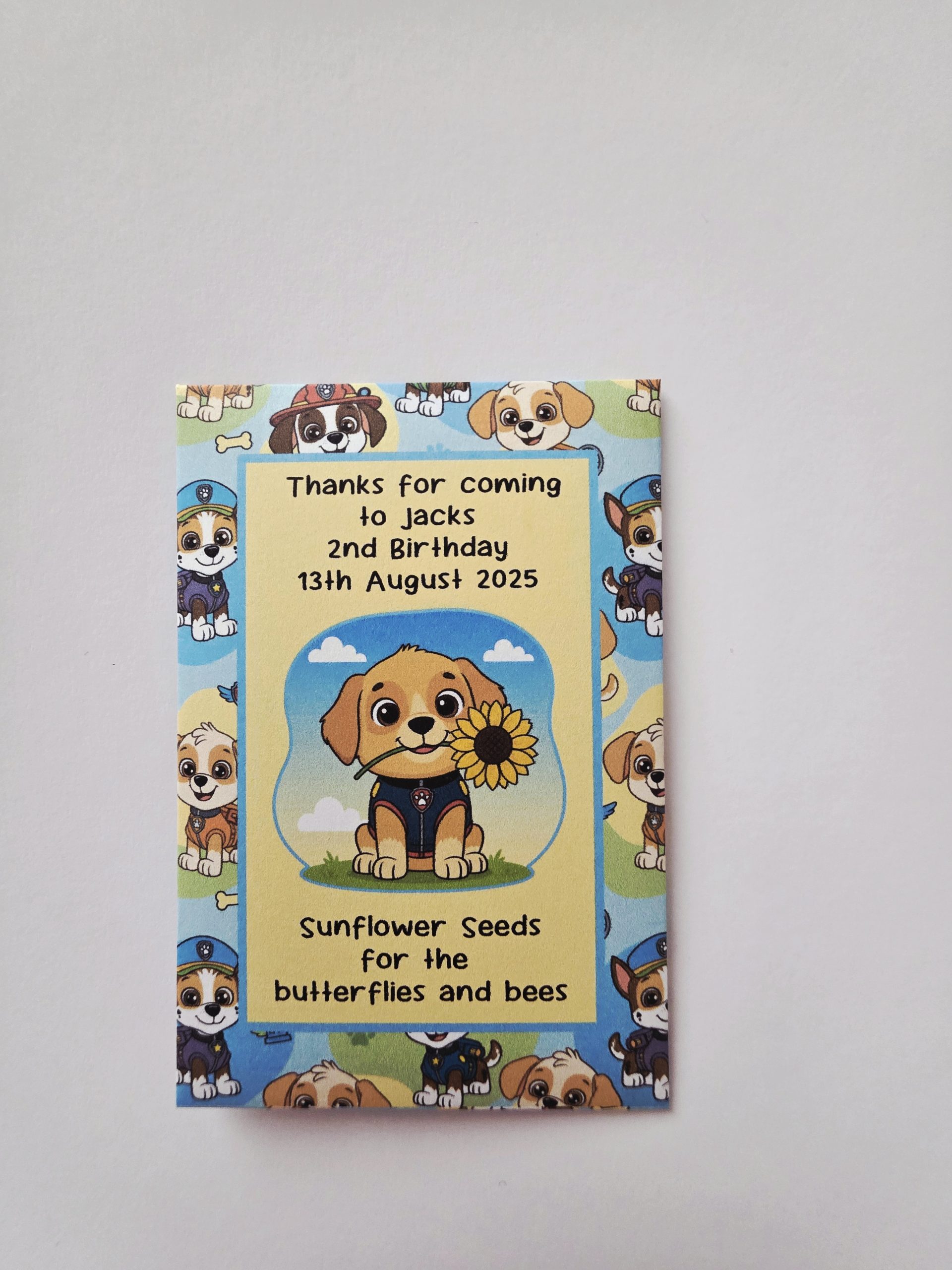 Personalised Sunflower Seed Packet Birthday Favours – Puppy Theme